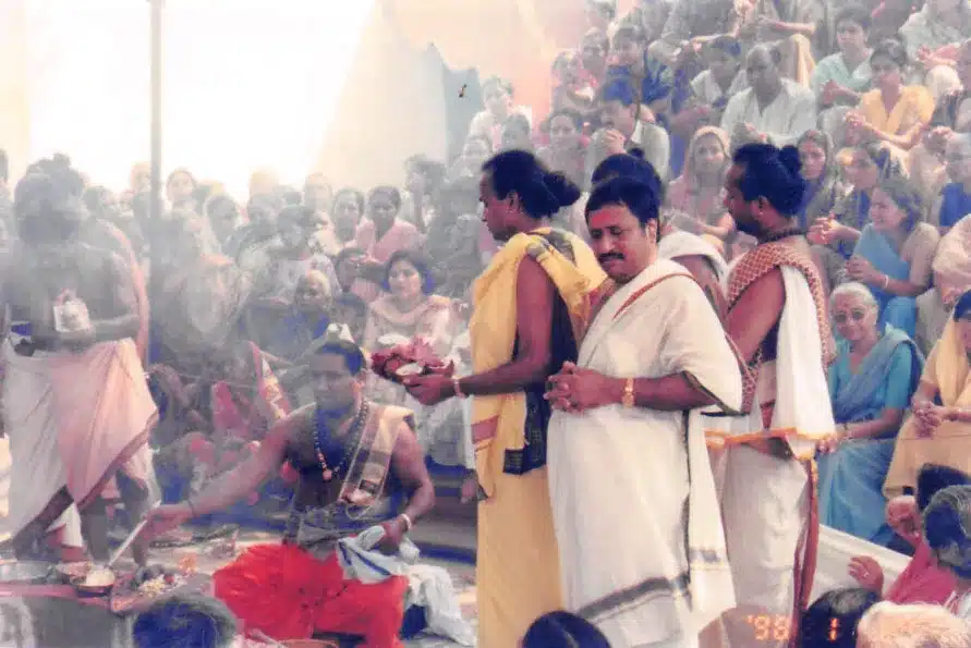 Pundits performing Pran Pratistha homa during Devkali puja 19 Sept 2002