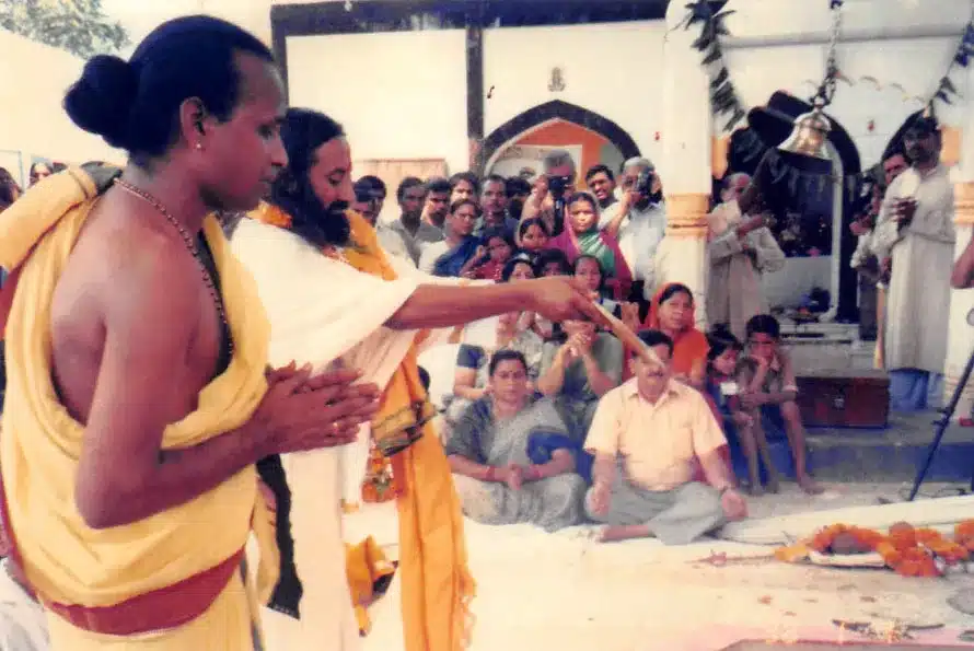 Gurudev doing aarti to goddess DevKali 19 Sept 2002
