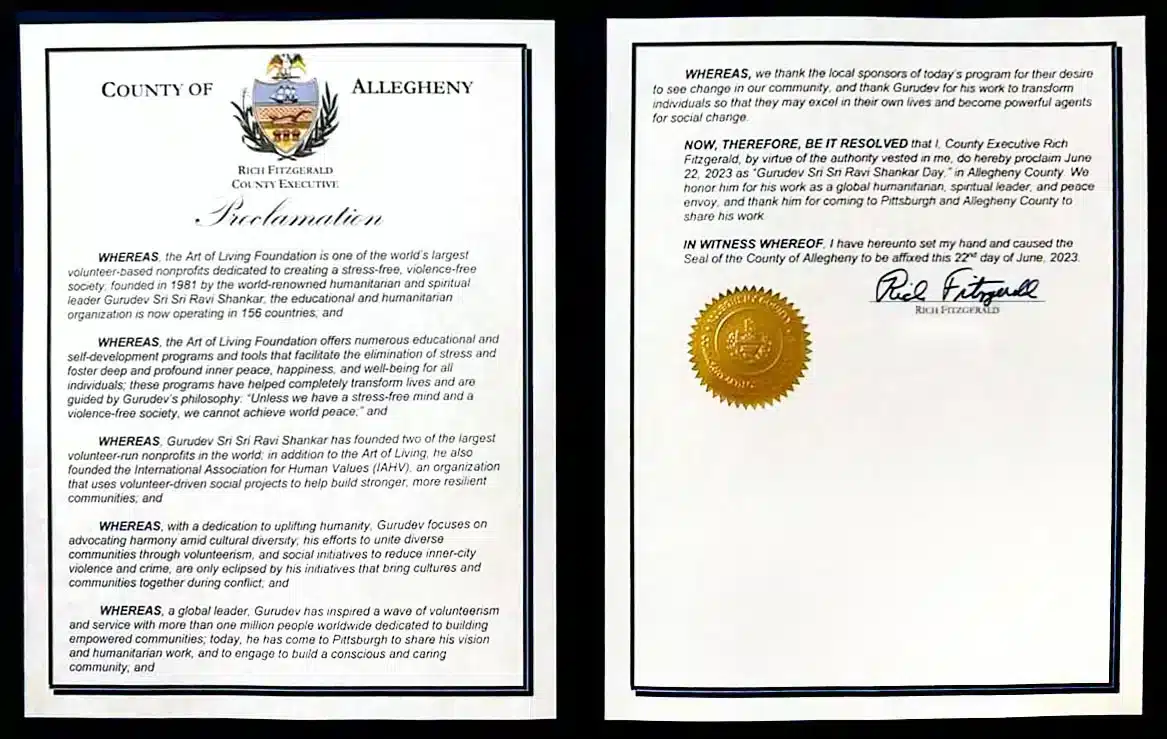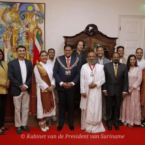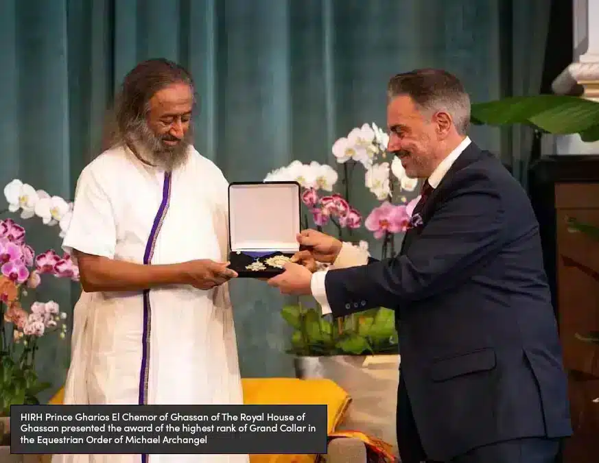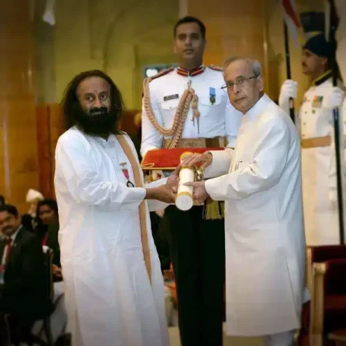 Gurudev has received numerous honors from governments and institutions around the world, including the highest civilian awards of Colombia, Mongolia, Paraguay, and Suriname. In 2016, he was awarded the ‘Padma Vibhushan’, India’s highest annual civilian honor. He has also been conferred with 26 honorary doctorates from universities across the globe, recognizing his contributions to peace, education, and humanitarian service.