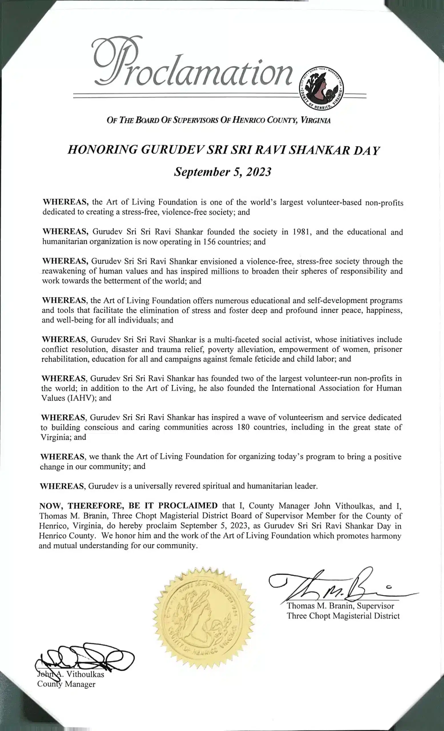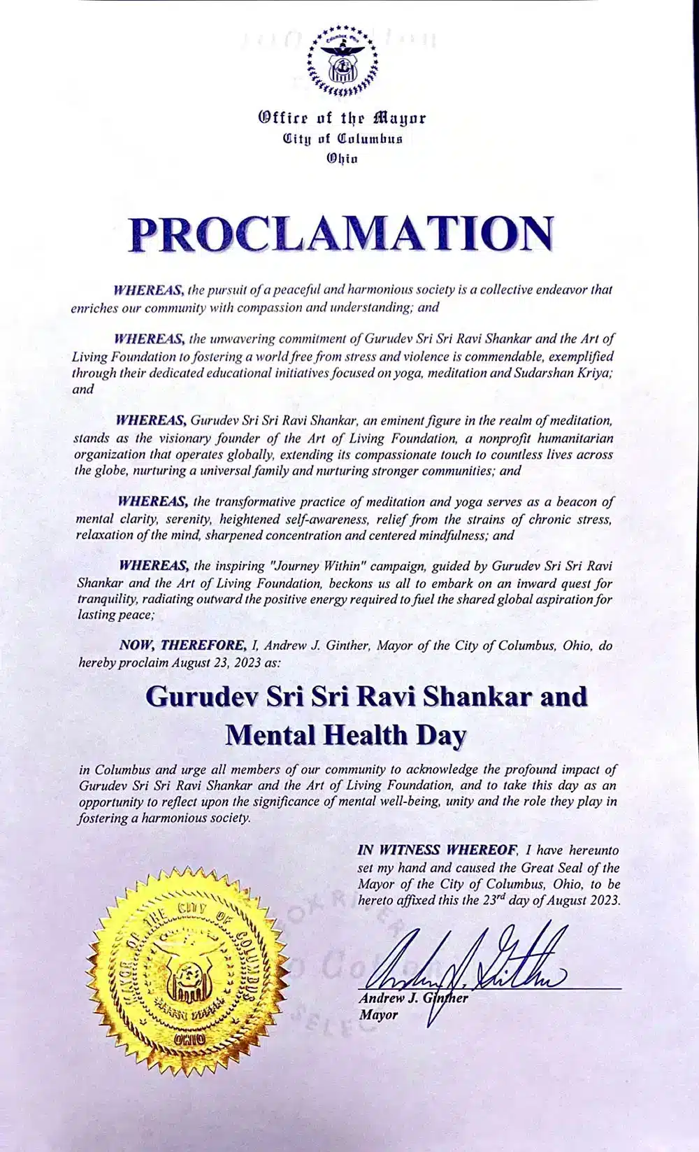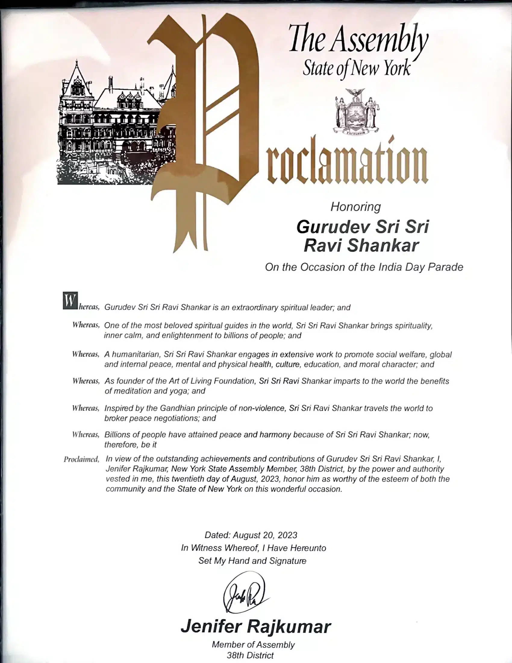 Proclamation on the Occasion of the India Day Parade