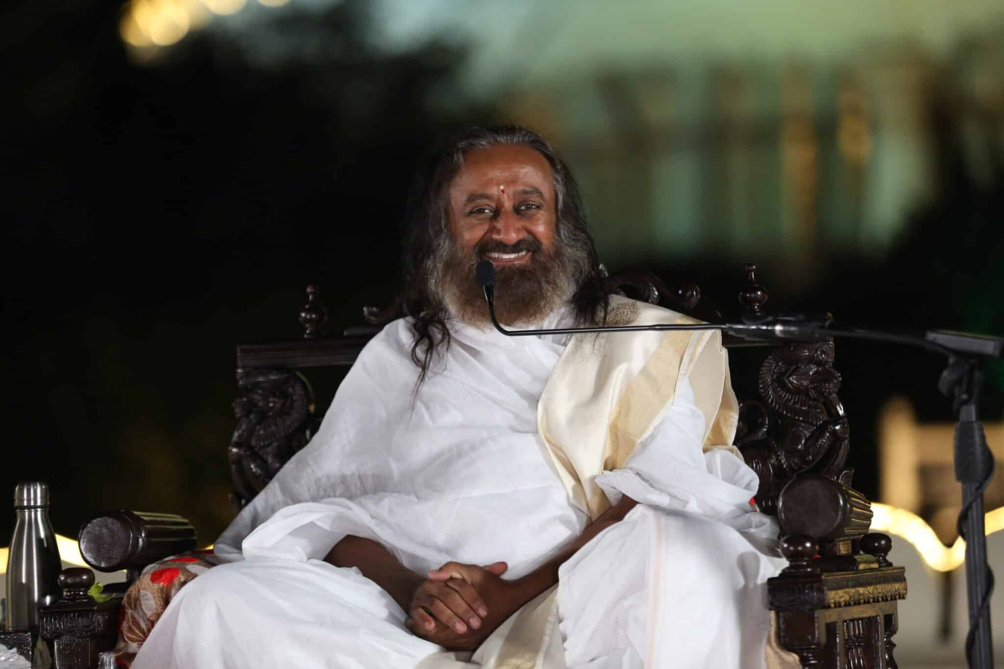 🌟 Soaking in Bliss – First Time Delhi NCR 🌟 An unforgettable evening of Knowledge & Meditation with Gurudev Sri Sri Ravi Shankar