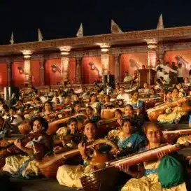 The “Sahasra Veena Jhenkara” musical event brought together 1100 veena artists on one platform for the very first time. The event, which sought to foster India’s ancient heritage of classical music, showcased the talents of young artists.