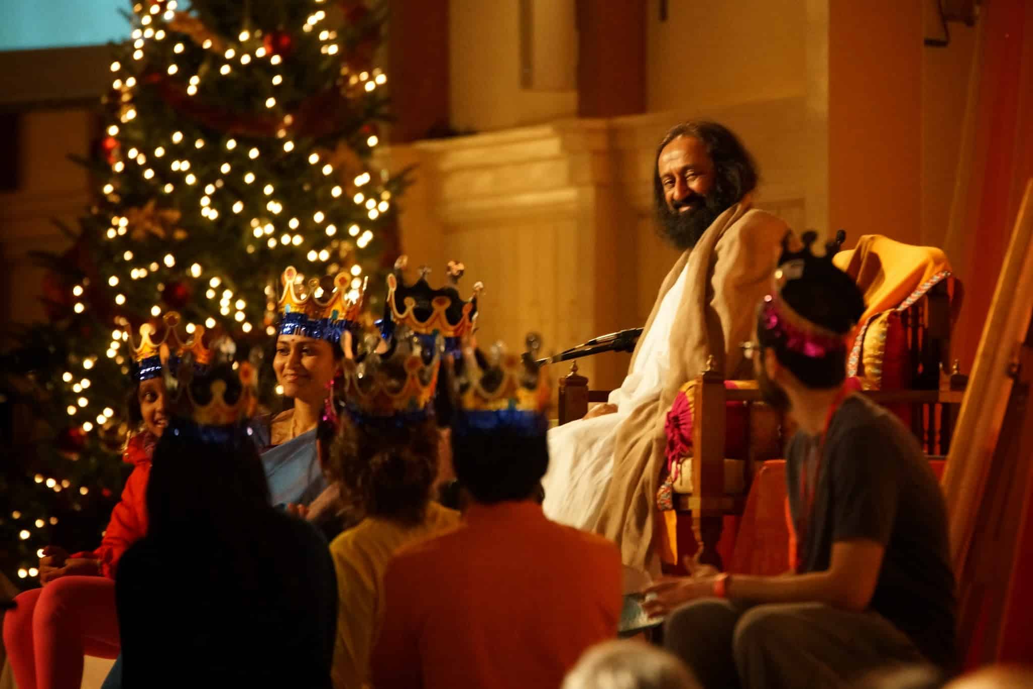 On Christmas Day, Gurudev gave a universal message of good-will for the holiday season: “The Christmas tree is telling you, ‘Be like a Christmas tree, evergreen’. Let our life be like a Christmas tree (which means being equanimous). Whether in winter or summer, fall or spring, the Christmas tree remains the same. So in life, in every situation, keep yourself green! The Christmas trees bears gifts for everybody. All that you are given in life is for everyone…all your talents, all that you have been bestowed with, it is all meant to help others. So serve, smile and celebrate!” After the program, many remarked that they were leaving with a lighter heart thanks to the program. As one participant shared, “I’m feeling a deep sense of gratitude for life and all its blessings.”