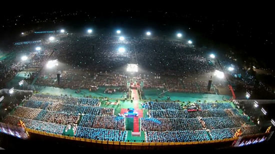 The flutists perched on a mammoth 30,000 square feet stage enthralled the audiences with the soothing melodies, based on Raag Yaman. The soulful evening got a special touch when the legendary maestro Pt. Hariprasad Chaurasia and Gurudev joined the musical celebration with their flutes during the concluding ceremony which ended with the symphony of ‘Vande Mataram’.