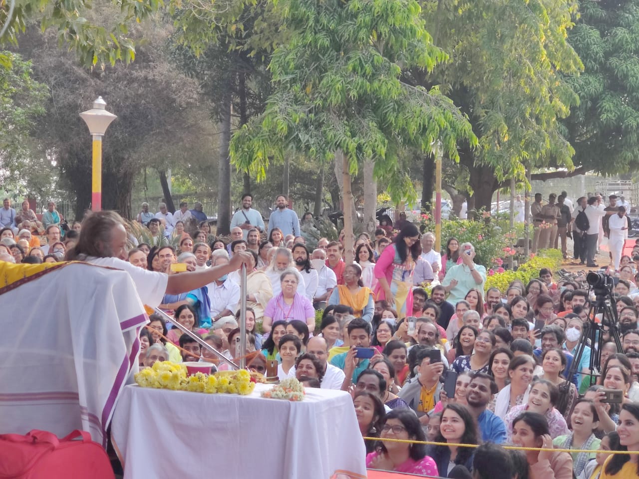 Shiva means shubh (auspicious) and Mogga means blooming from the bud. So, Shivamogga is a place where the auspicious begins and spreads. What started in Shivamogga: the Sudarshan Kriya is being practiced all over the world. Today we have issues in the world that are burning. The reason for this is stress, lack of trust. To rebuild trust and bring back peace in the world, we need wisdom. It is wisdom that can put an end to war. Insecurities and fears only cause conflict, but wisdom and meditation can unite people and bring peace to the world.