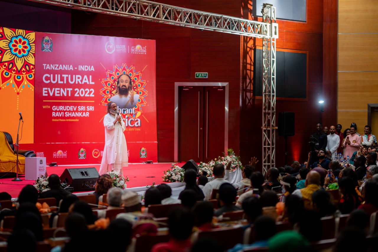 The Cultural Event, organized jointly by the Cultural Ministry and the Art of Living, showcased a blend of traditional Indian & African performances. Later, the thousands that attended the event experienced a deep meditation guided by Gurudev. Among the dignitaries were Mr. Mohamed Mchengerwa (Hon. Minister of Culture, Artists and Sports) and Dr. Hassan Abbas (Permanent Secretary, Ministry of Culture, Arts and Sports).