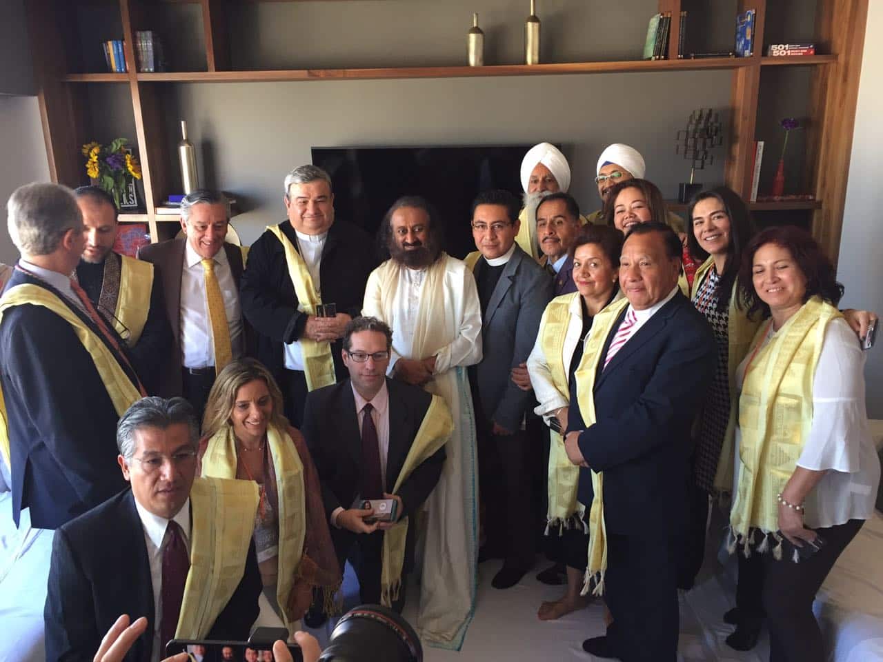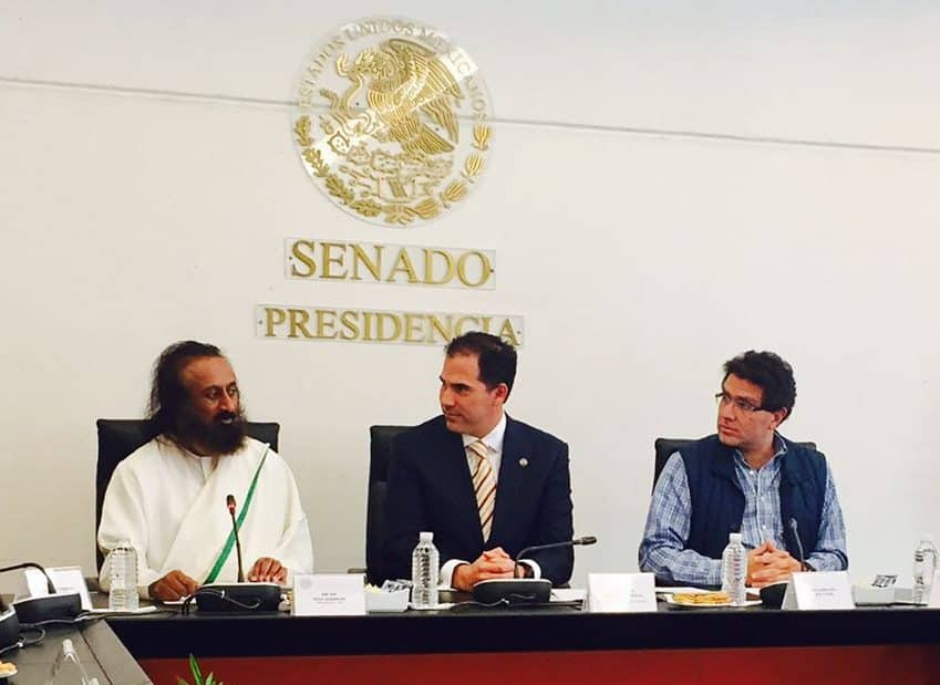 While interacting with the Senators at the Mexican Senate, Gurudev urged the government, media, NGOs and businesses to work together and free the society from violence. “Violence arises out of lack of belongingness and stress. It’s important to attend to stress so that human values of peace, sense of belongingness and commitment can flourish in society,” he said.