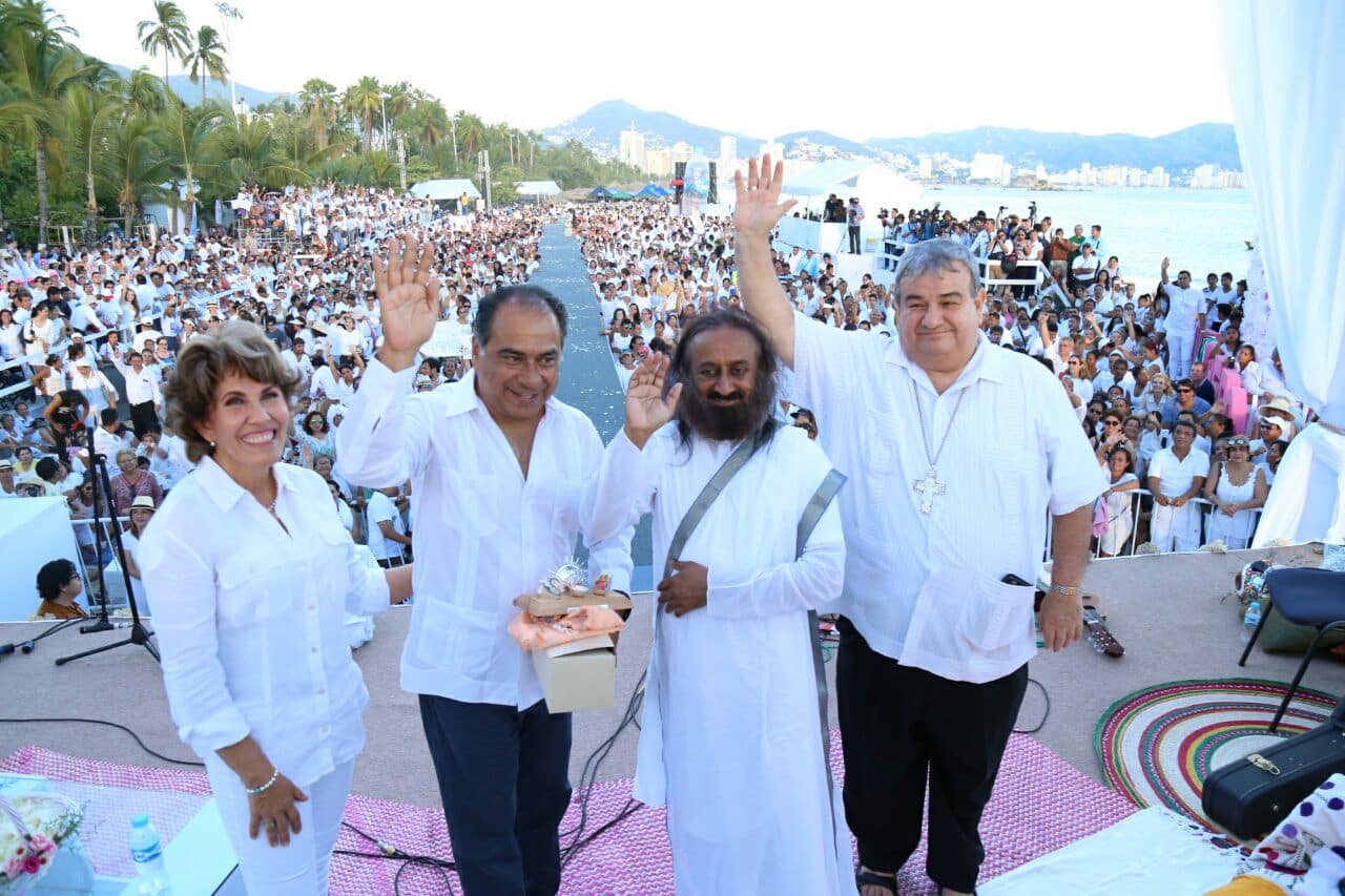 At Guerrero, one of the Mexico’s most violent states, Gurudev was welcomed with a massive public reception by Governor Hector Antonio Astudillo Flores. The Governor of Guerrera also conferred the Ambassador of Peace recognition on Gurudev, an honour given to only three people so far.