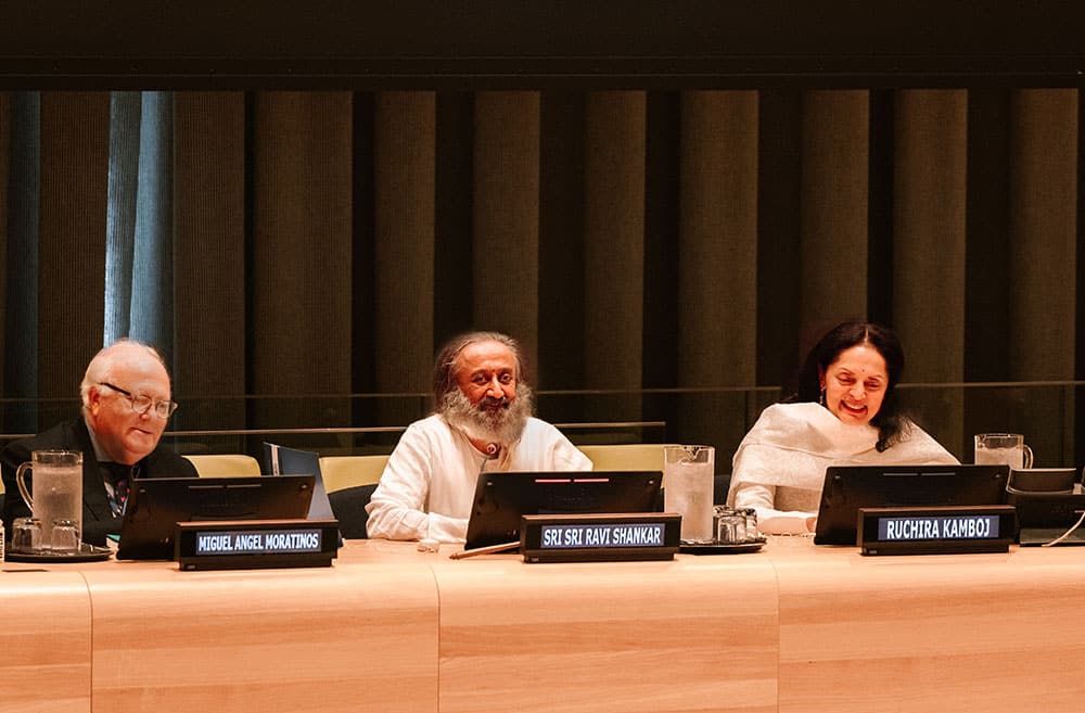 Gurudev Sri Sri Ravi Shankar shared profound insights on peace, security, and sustainable development at the United Nations. The discourse, meticulously organized by the Permanent Mission of India, aimed to foster a deeper understanding of the intrinsic connection between these critical facets for global harmony amid escalating security concerns globally.