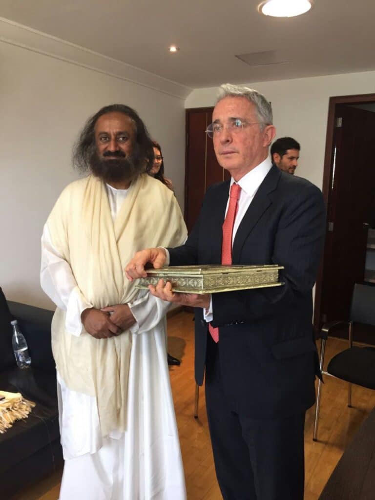 Gurudev Sri Sri Ravi Shankar met with Former president Alvaro Uribe, leader of the opposite party in Colombia