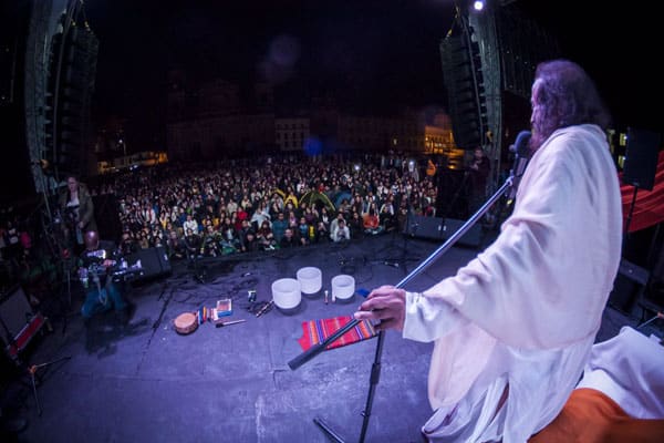 Enthusiastic crowds welcomed Gurudev in Bogota and Cali. His public program at the historic Bolivar Square outside the Parliament saw massive participation of people from all walks of life. Members of the iconic and most popular Latin American rock band Aterciopelados meditated with Gurudev and sang two bhajans in his honor. Aterciopeladoshas won multiple Latin Grammies and been honored by the United Nations for their work denouncing violence in Colombia.