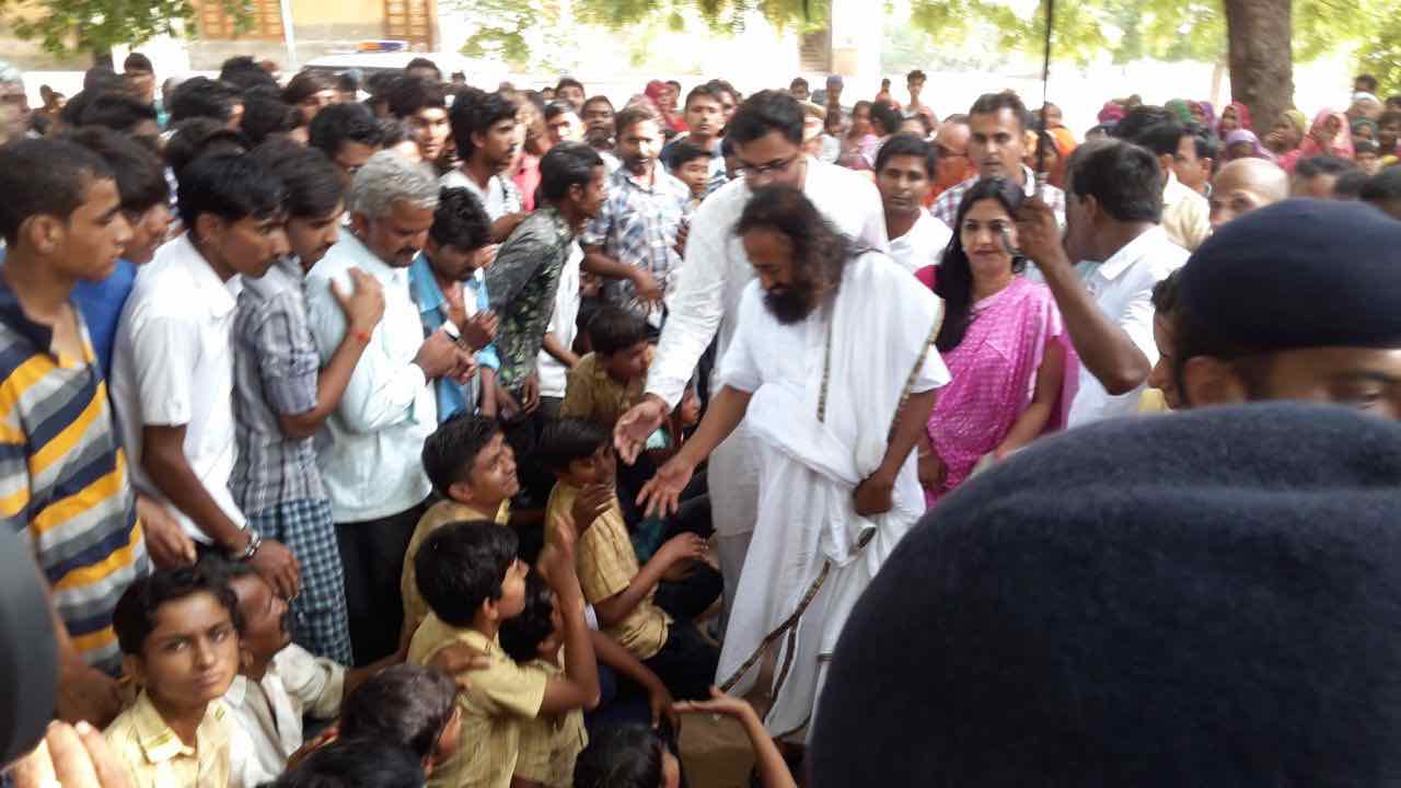 Gurudev Sri Sri Ravi Shankar met the victims of the flood-affected regions of Thara and Dhanera at Banaskantha in Gujarat today.