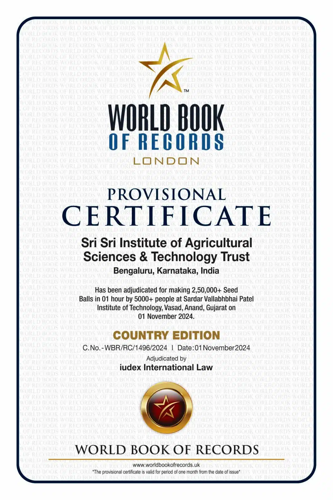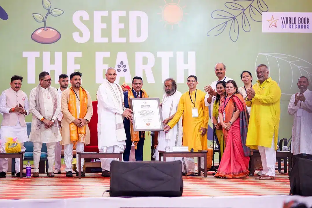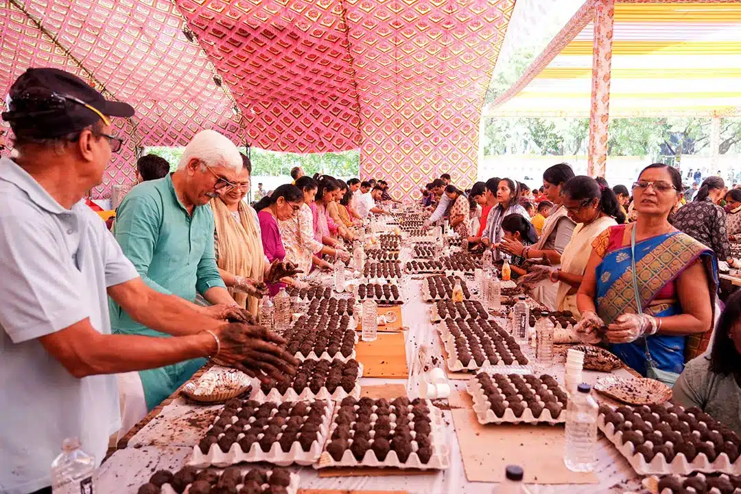 With a goal of creating a greener, sustainable future, and taking active steps to counter climate change, 5000 Art of Living volunteers created another World Record for making 250,000 seedballs, the largest number of seedballs ever made in a major reforestation initiative, at SVIT campus. The organization is now also in the record books for making the longest formation of a slogan with seedball trays.