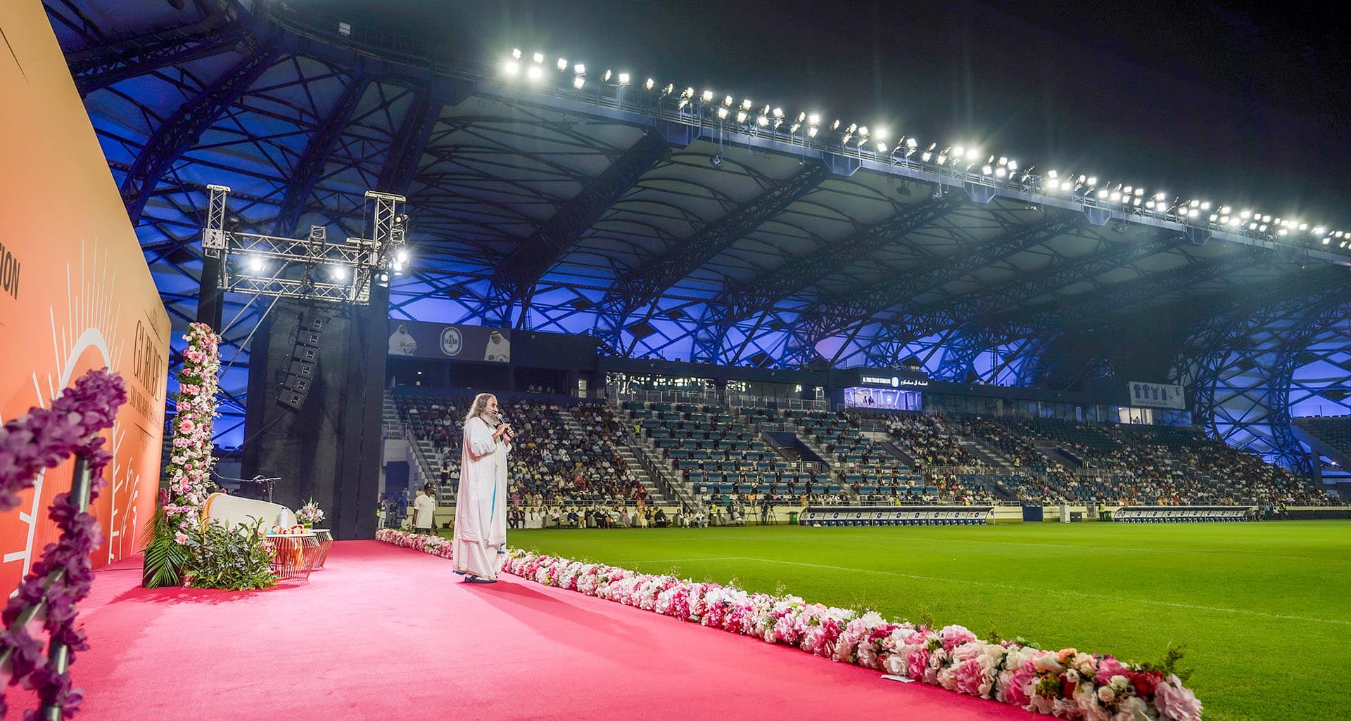 Thousands from the Gulf meditated at the Al-Maktoum Stadium in Dubai! pic.twitter.com/lbavosJ3KU