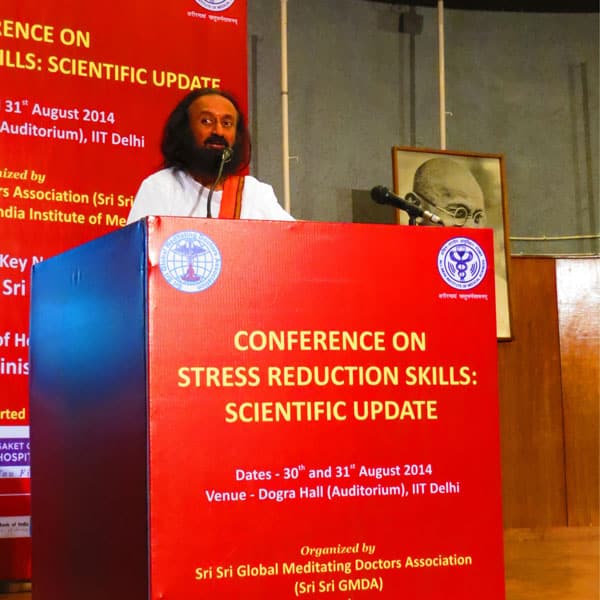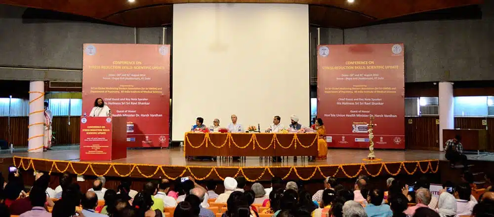 Gurudev was the chief guest at a conference titled ‘Stress Reduction Skills: Scientific Update’ organized by Department of Psychiatry, AIIMS in collaboration with Gurudev GMDA (Global Meditating Doctors Association)